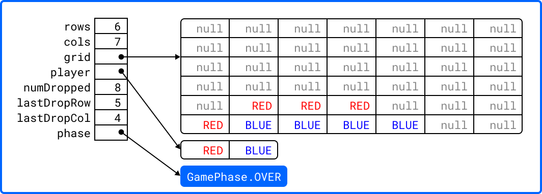 What you are about to read may seem counter-intuitive, but you will not be writing any code for this project to let users interactively play a game of Connect Four; instead, you will implement and test a class that, once fully implemented, can be used to make writing such an interactive program easier.